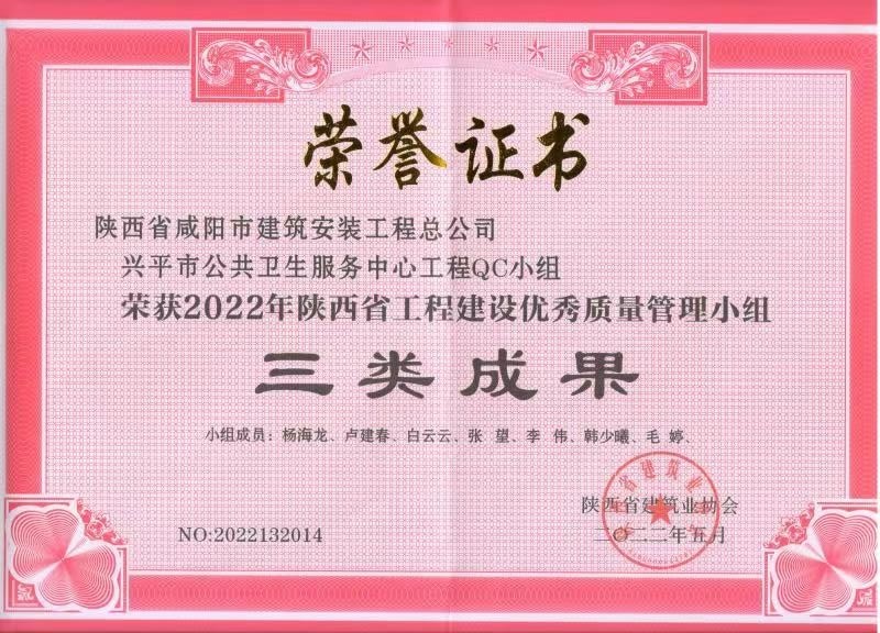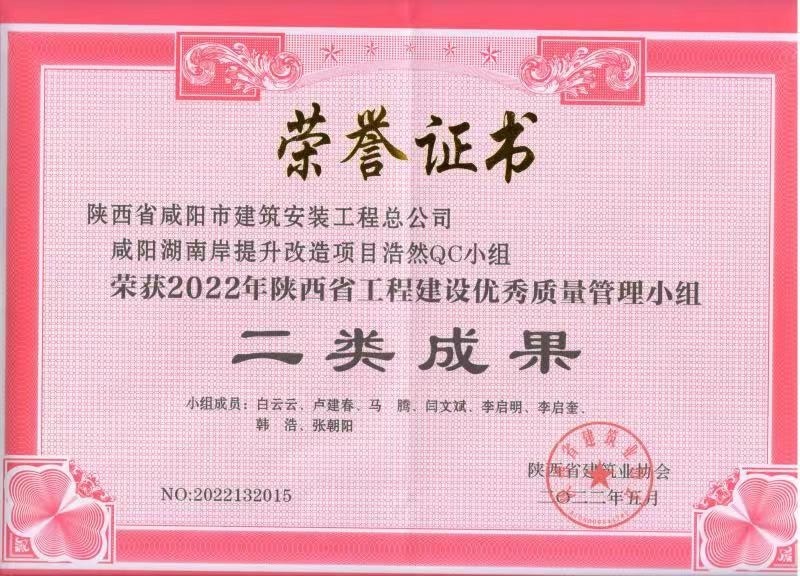 2022年度QC小組活動(dòng)成果證書(shū)
